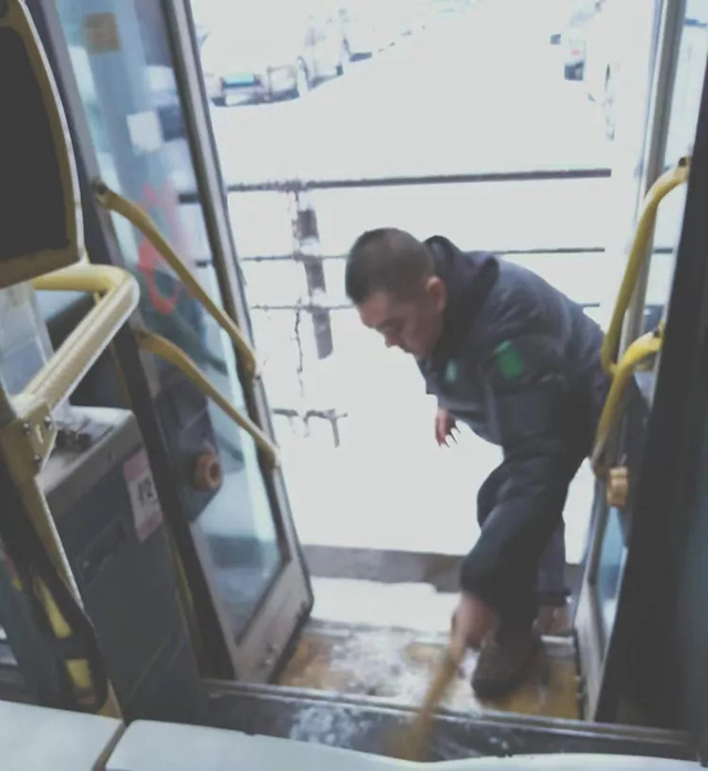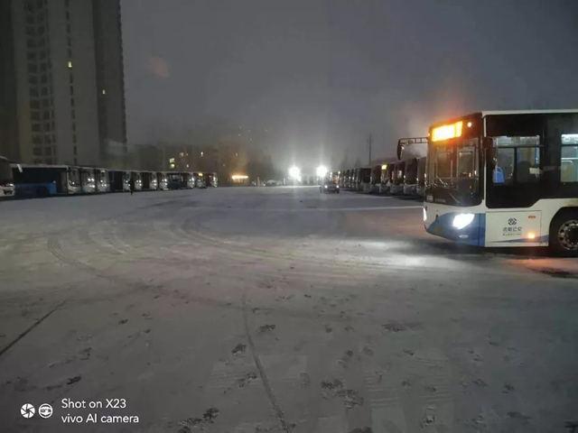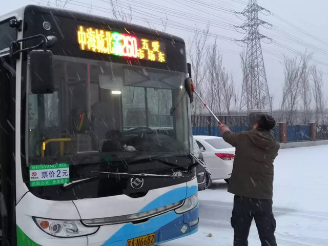 2019年2月15日、19日沈城兩次降雪,每一次的雨雪天氣的來(lái)襲,都是對(duì)全體一線(xiàn)公交人都是嚴(yán)峻的考驗(yàn)。面對(duì)惡劣天氣,各單位多項(xiàng)舉措在雨雪中連夜奮戰(zhàn),干部職工上下一心,紛紛提前到崗,清理場(chǎng)區(qū)、站區(qū)、車(chē)輛積雪,做好出車(chē)前的各項(xiàng)例行檢查,全力保障市民安全出行。大家不畏嚴(yán)寒、齊心協(xié)力、配合默契,忙碌的身影在雪天里形成了一道最亮麗的風(fēng)景線(xiàn)。