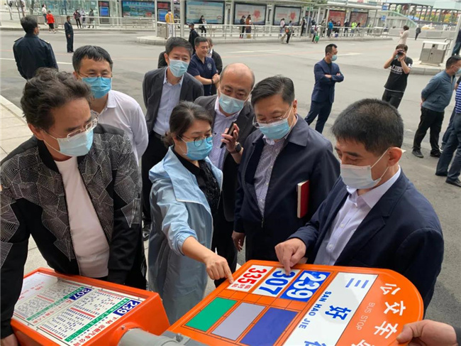 國慶節(jié)前夕,市交通運輸局公交處處長高永宏、辦公室主任王笑春、執(zhí)法隊公交執(zhí)法大隊大隊長田豐柱、出租汽車執(zhí)法協(xié)調(diào)處處長王軍等一行來到沈陽客運集團北站公交樞紐站,檢查公交樞紐站的安全生產(chǎn)、疫情防控及國慶節(jié)期間公交運營保障情況。