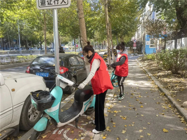 活動(dòng)中,志愿者們身穿紅馬甲,拿著清掃工具來到活動(dòng)地點(diǎn),重點(diǎn)對社區(qū)道路、綠地、樓道車庫等公共區(qū)域進(jìn)行清掃清潔,對住宅區(qū)內(nèi)生活垃圾、亂堆雜物等進(jìn)行徹底清理,對公共設(shè)施上小招貼和噴涂廣告進(jìn)行清除,擺放零散無序的共享單車。