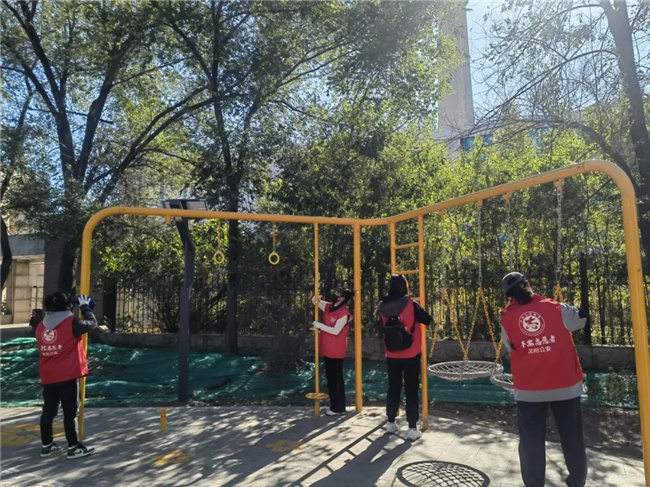 活動(dòng)中,志愿者們身穿紅馬甲,化身“志愿紅”,大家一同來到附近轄區(qū)的園區(qū)內(nèi)開展“大清掃”活動(dòng),對街道上的護(hù)欄、公交候車?yán)燃罢九频裙苍O(shè)施進(jìn)行擦拭清潔,此外,志愿者們對綠地上的垃圾進(jìn)行了統(tǒng)一清掃。