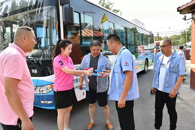 今年,我們又迎來(lái)了今年的高溫季節(jié),為做好防暑降溫工作,確保一線(xiàn)職工平安度夏,集團(tuán)機(jī)關(guān)開(kāi)展了“送清涼”活動(dòng),集團(tuán)公司領(lǐng)導(dǎo)班子、集團(tuán)公司機(jī)關(guān)各部室負(fù)責(zé)人都積極的參與到了本次活動(dòng)中,為奮戰(zhàn)在一線(xiàn)的駕駛員和職工送去了絲絲涼意,獻(xiàn)上了一份誠(chéng)摯的關(guān)懷。
